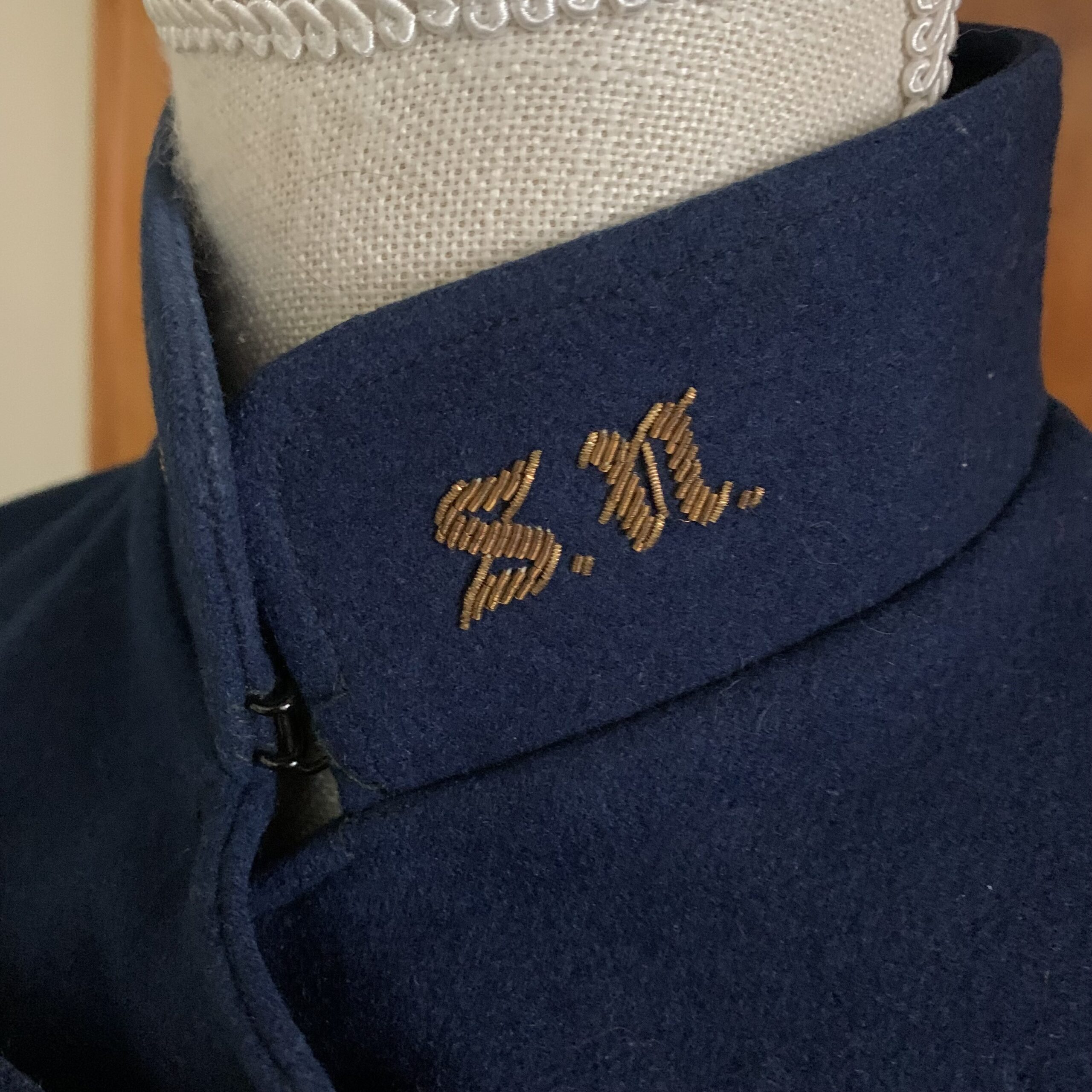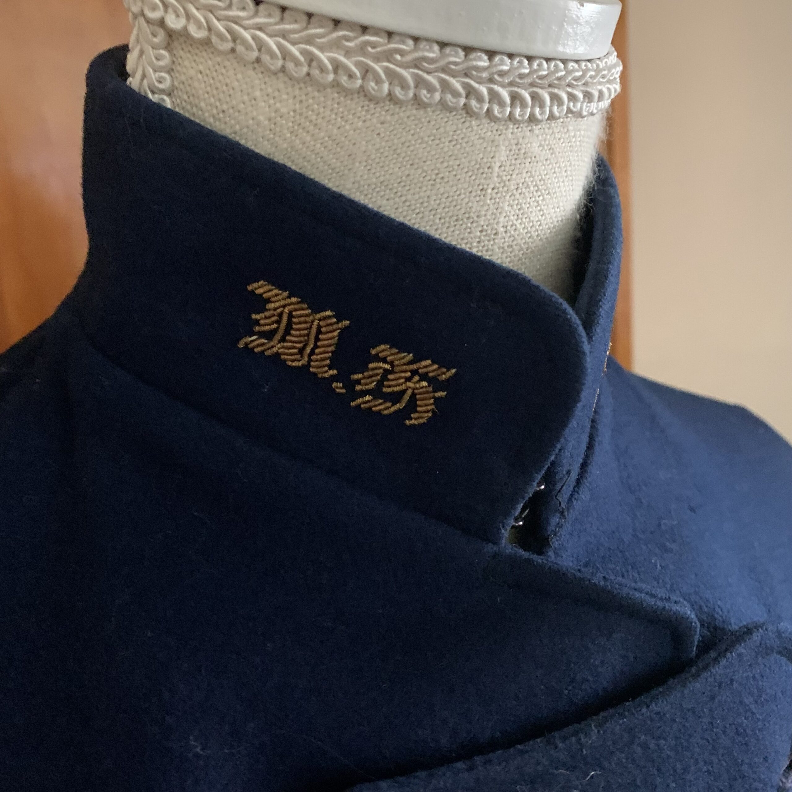 Collar: Stand collar with embroidered insignia
