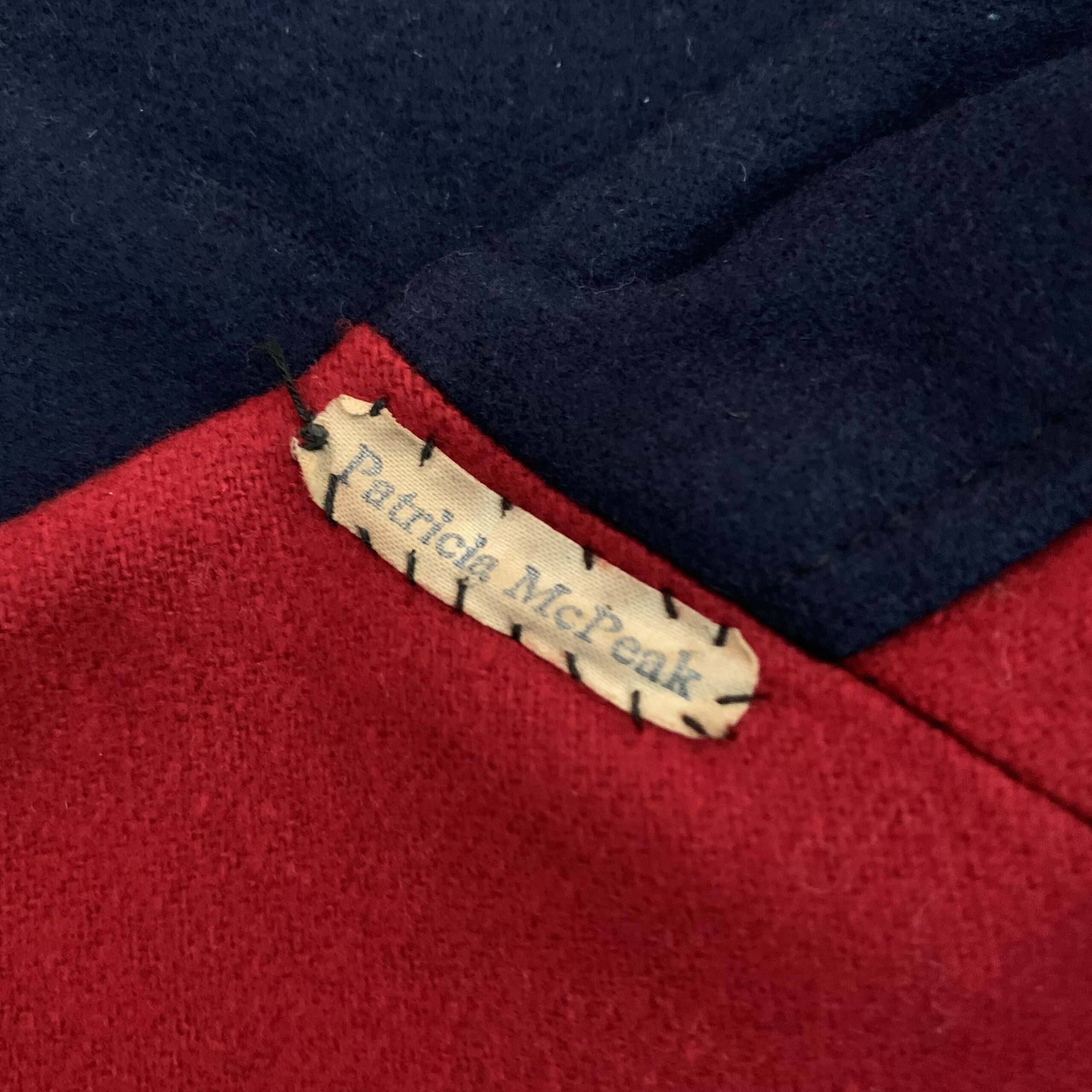 An interior name tape identifies the original wearer as Patricia McPeak, preserving a small trace of the nurse who once wore this cape during her training.