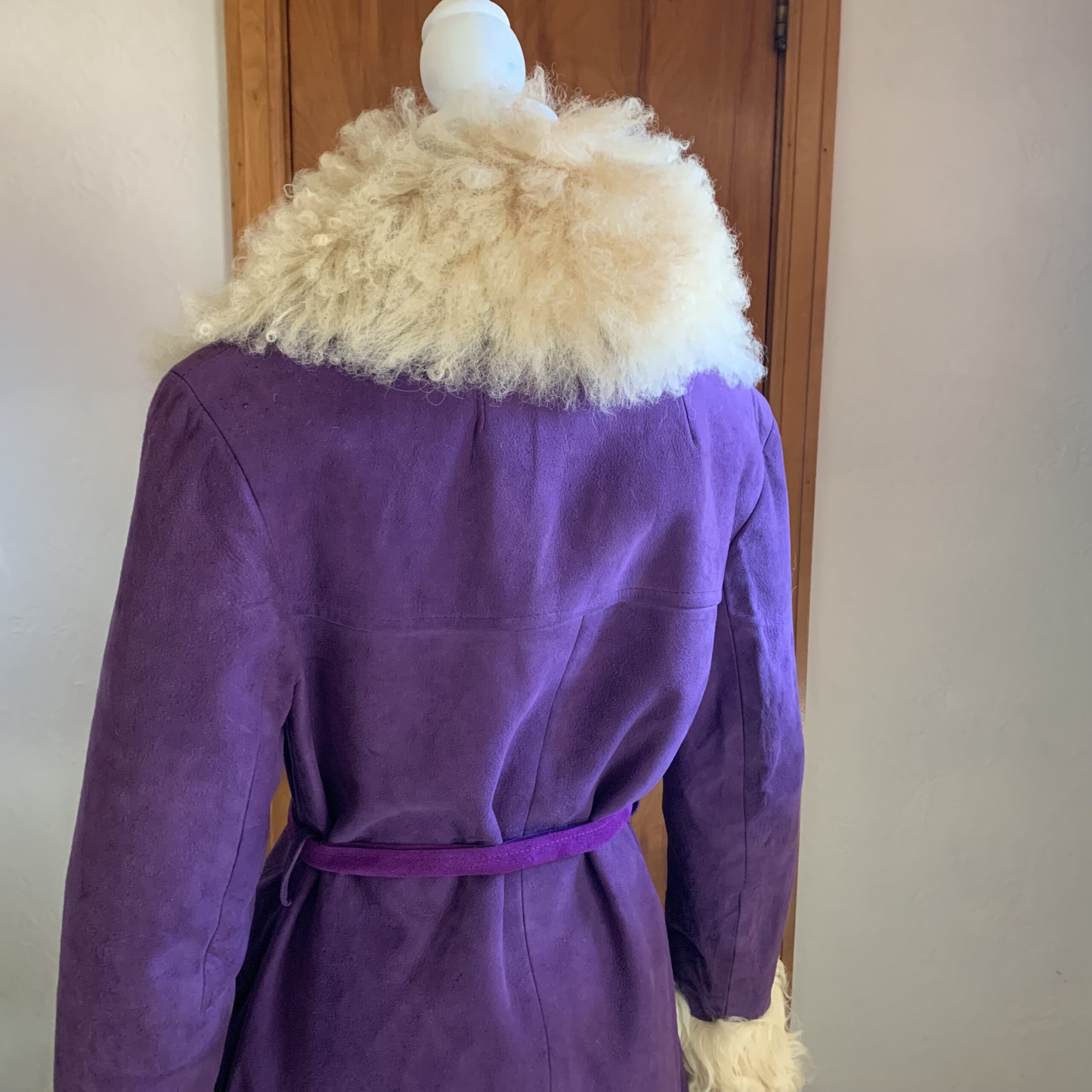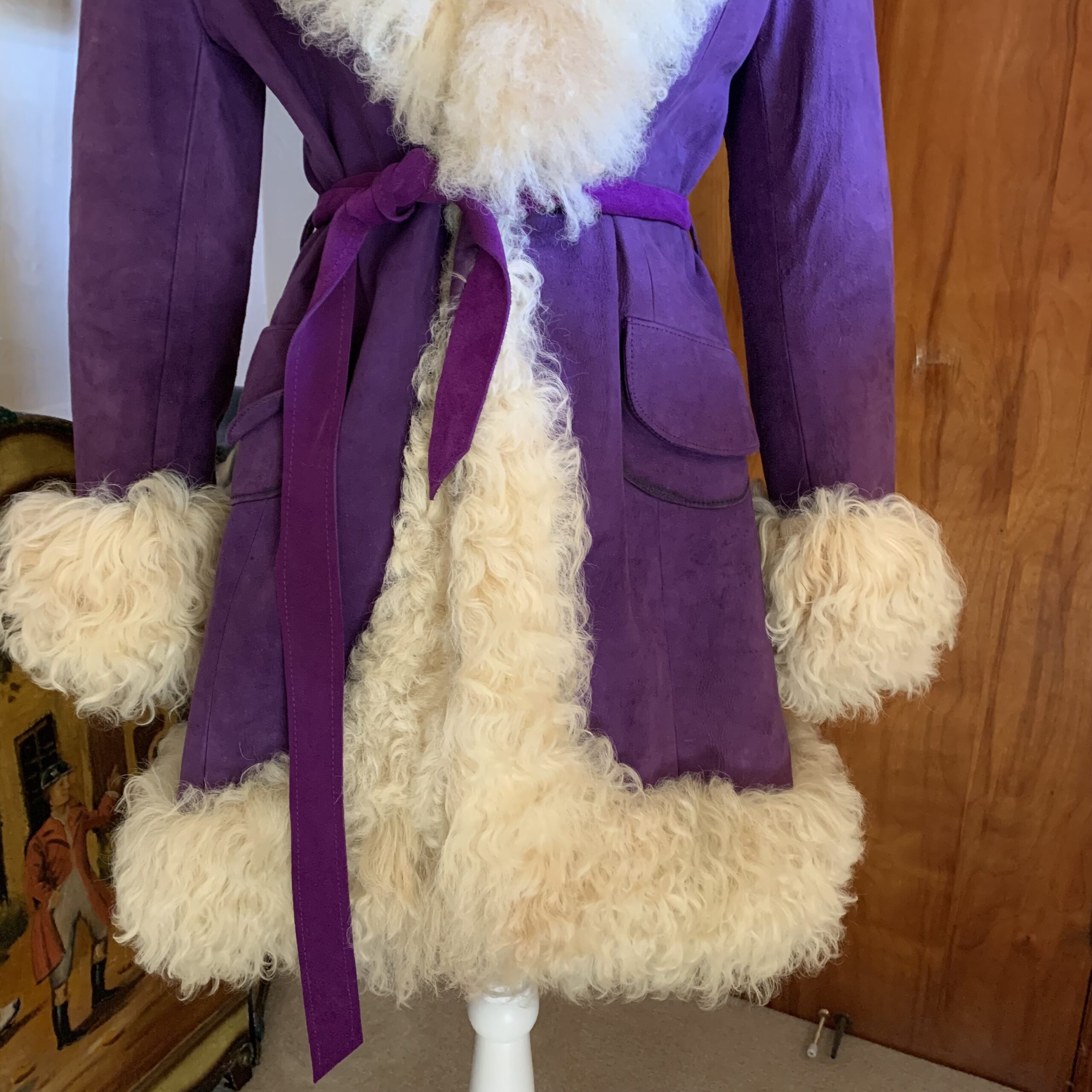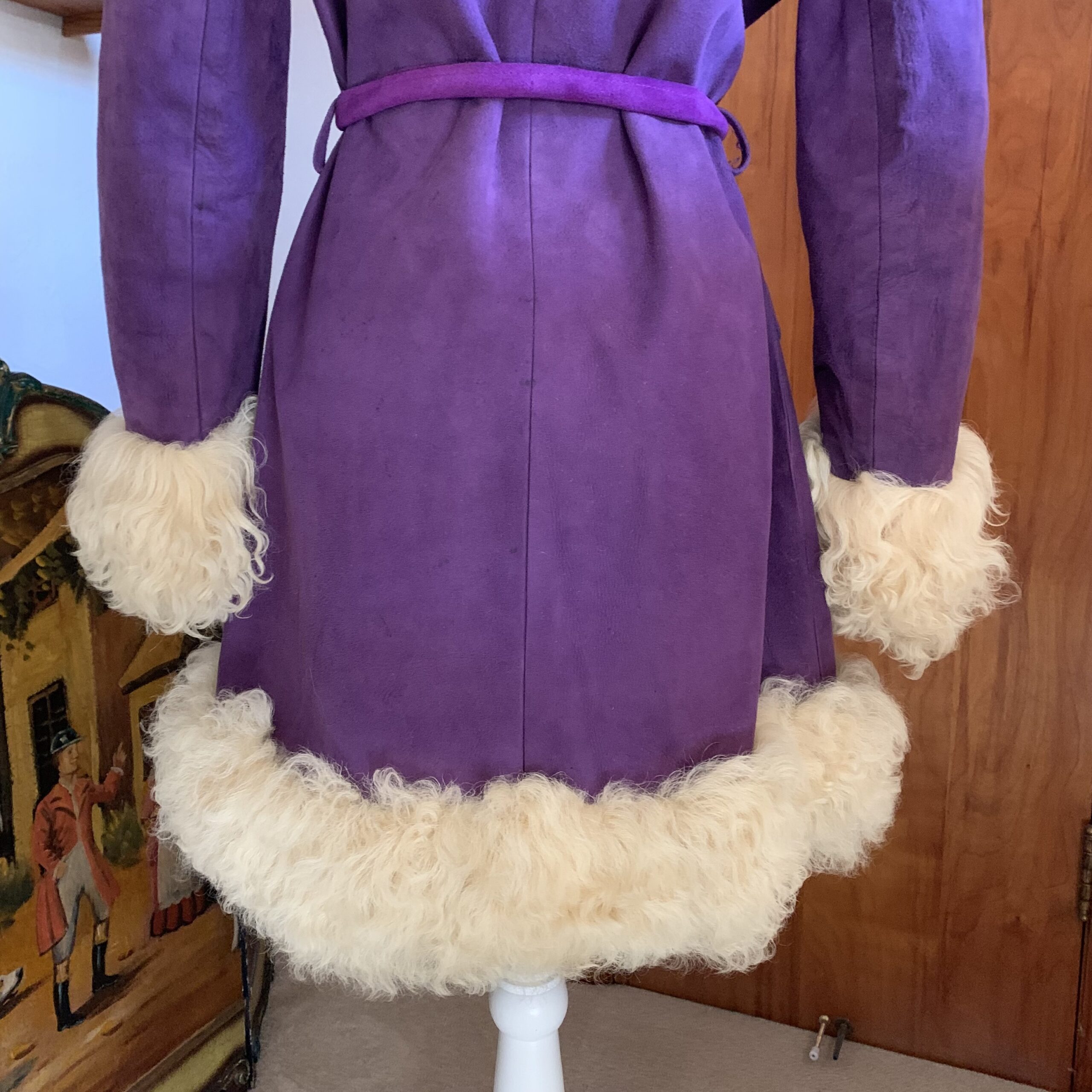 Experience true vintage luxury with this stunning late-1960s to early-1970s Lilli Ann London coat, crafted in England from rich purple suede and trimmed with ultra-soft genuine Mongolian lamb fur. This rare colorway is one of the most sought-after versions of Lilli Ann’s iconic fur-trim outerwear line.