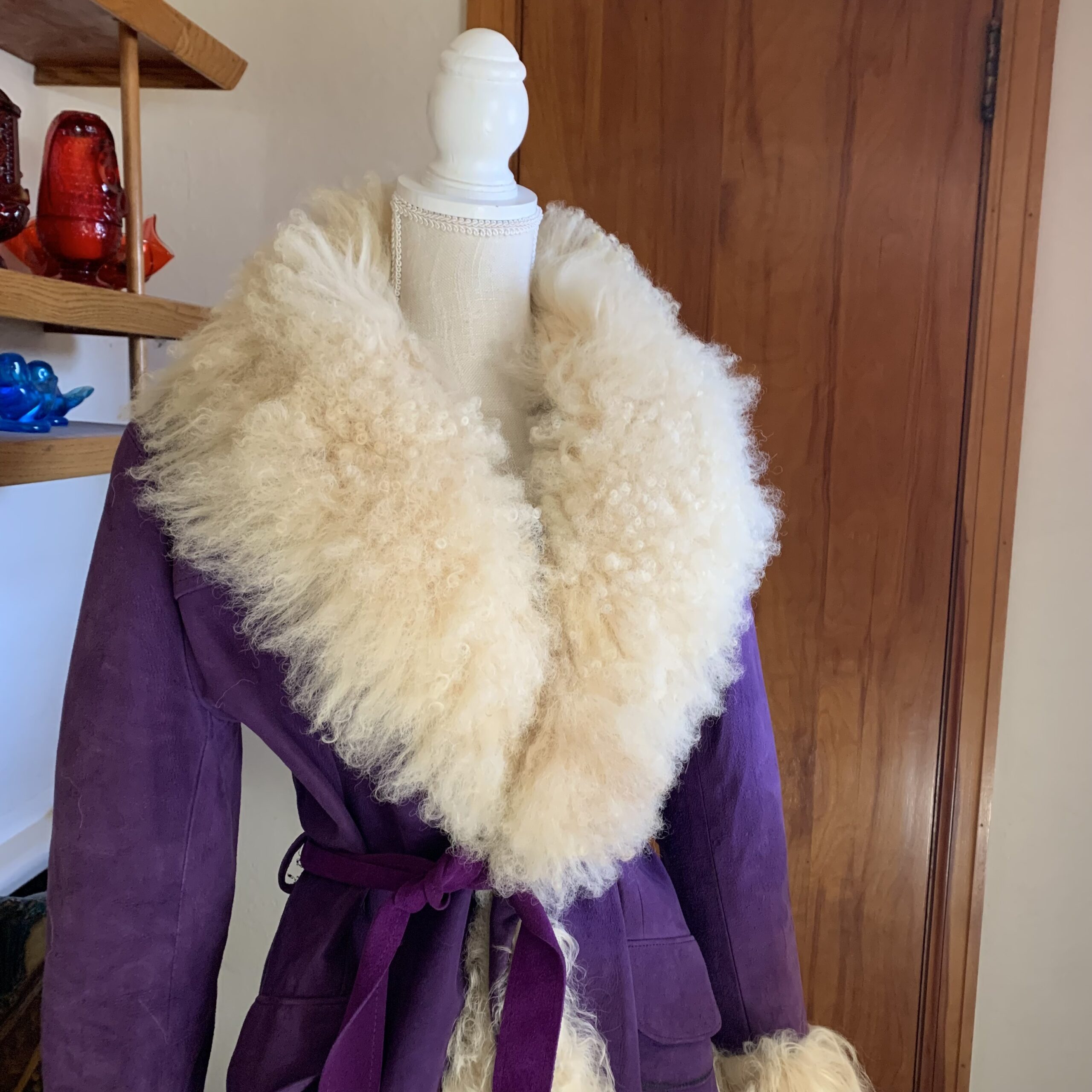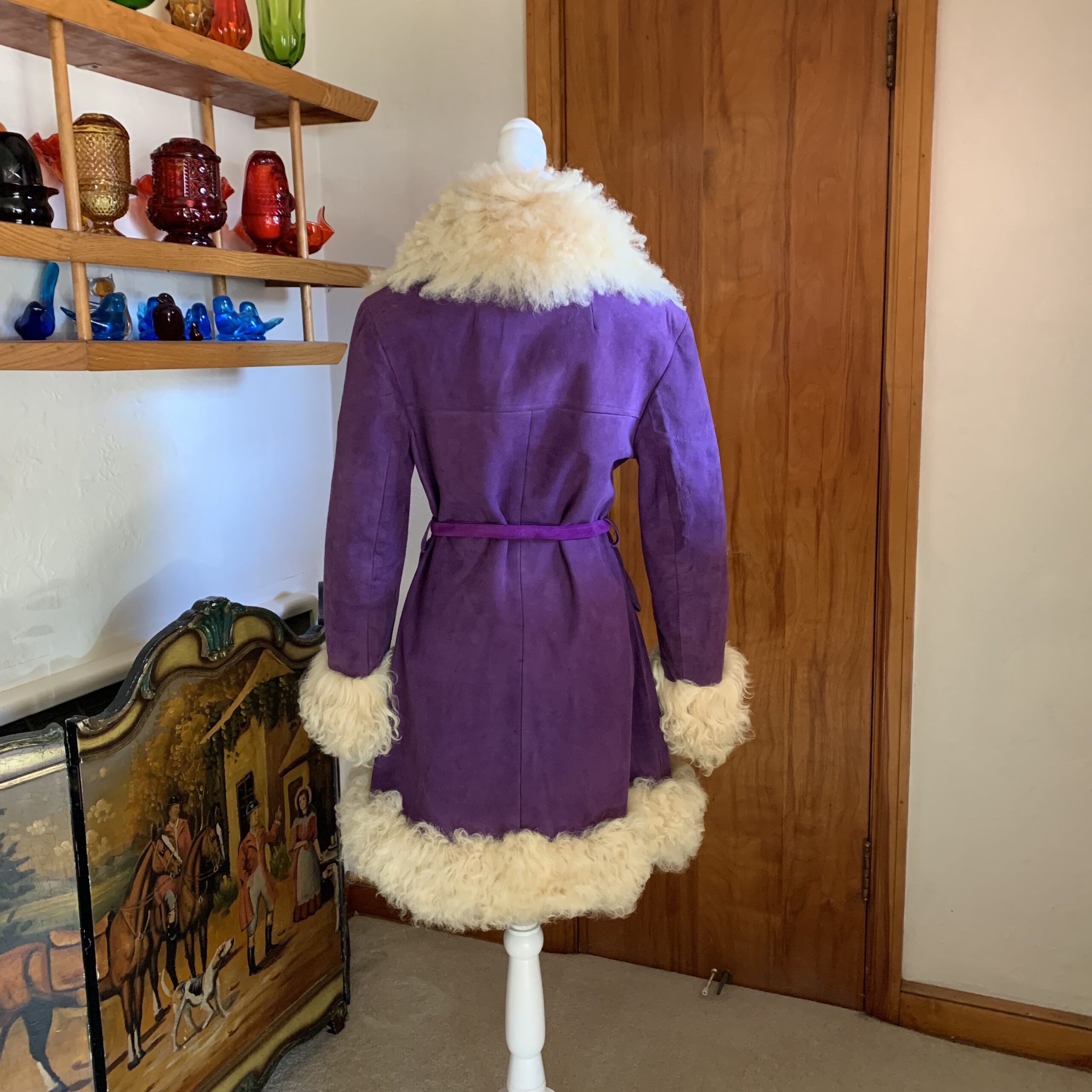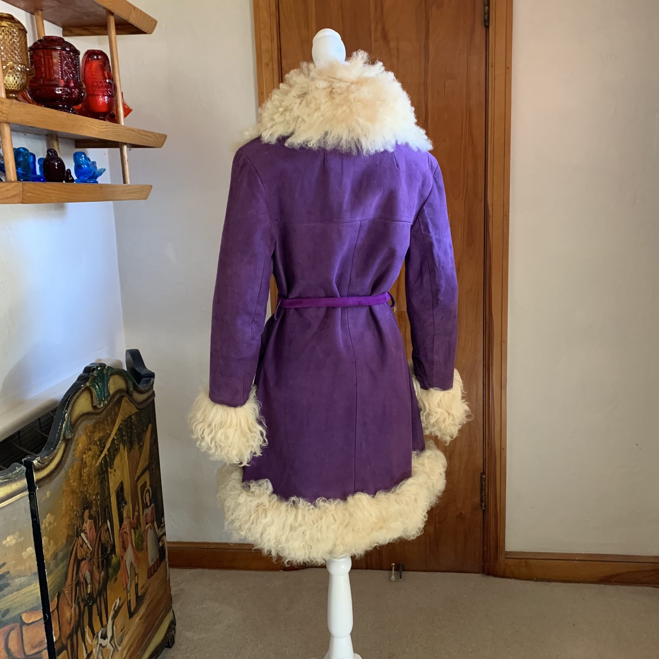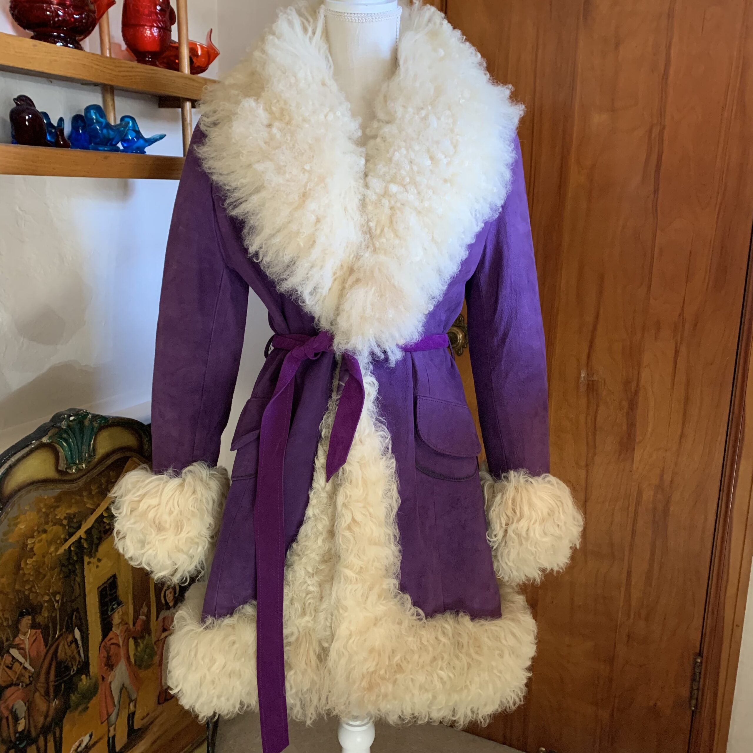 Experience true vintage luxury with this stunning late-1960s to early-1970s Lilli Ann London coat, crafted in England from rich purple suede and trimmed with ultra-soft genuine Mongolian lamb fur. This rare colorway is one of the most sought-after versions of Lilli Ann’s iconic fur-trim outerwear line.