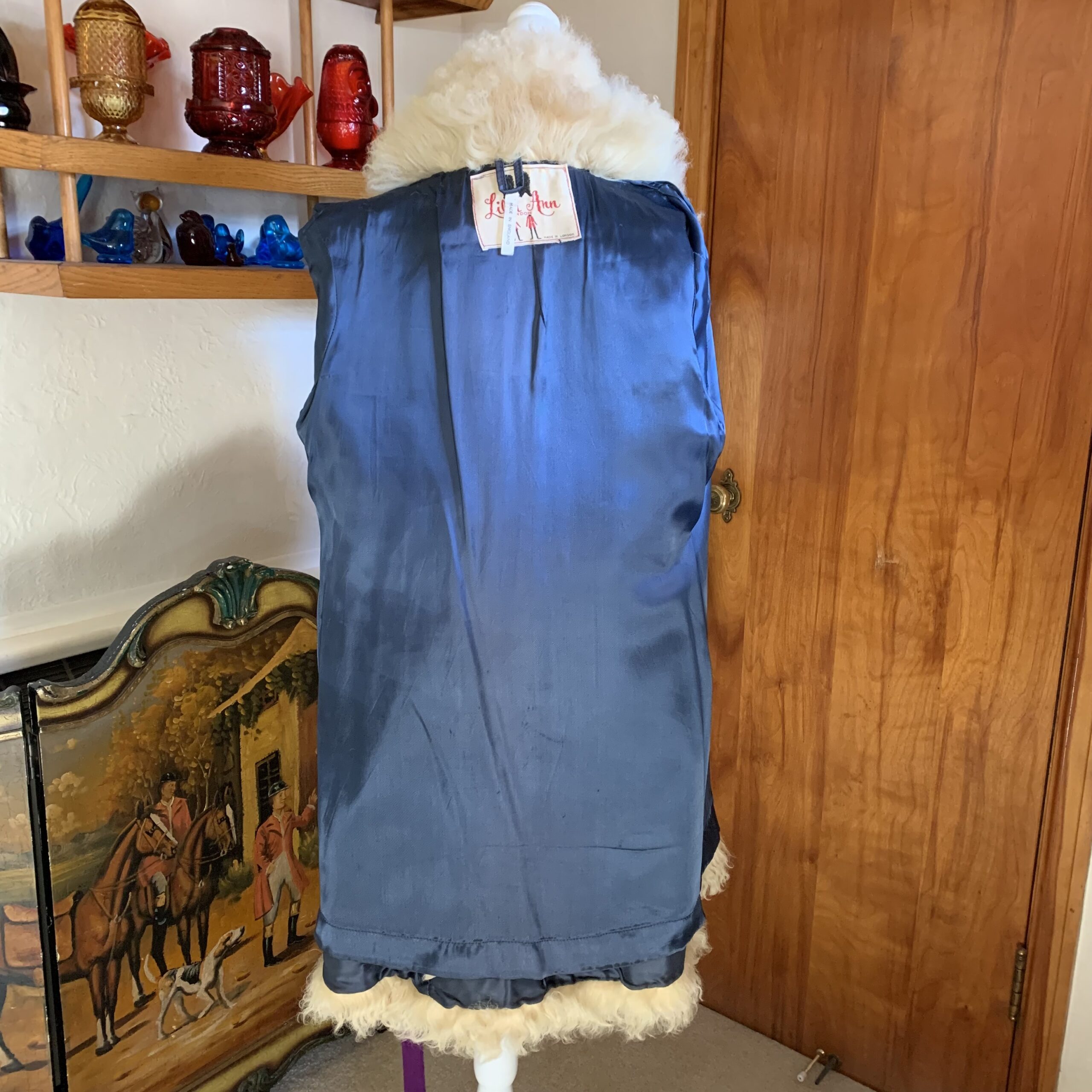 Condition: Excellent for age — suede is vibrant with minimal wear, fur is full and soft, lining clean. Fur has been conditioned and lightly brushed. Some light fur shed, but does not affect wear. Original belt did not come with the piece, I had another one custom made. Satin interior lining is clean with no rips. No size tag on the item, please compare to your own measurements for best fit.